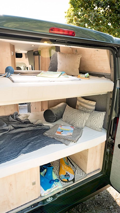 Der CLEVER VANS Vario Kids verfügt serienmäßig über 4 Sitz- und Schlafplätze.