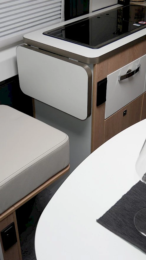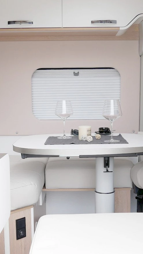 Dank der L-Sitzgruppe und dem zusätzlich klappbaren Sitz bei der Schiebetür ist ein geselliger und komfortabler Abend garantiert.
