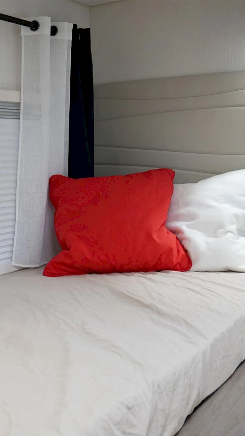 Das optionale elektrische Hubbett vorne über der Dinette ermöglicht ein Schlafangebot von bis zu 4 Personen - Ein wunderschöner Familienurlaub oder ein gemeinsames Wochenende ist garantiert.