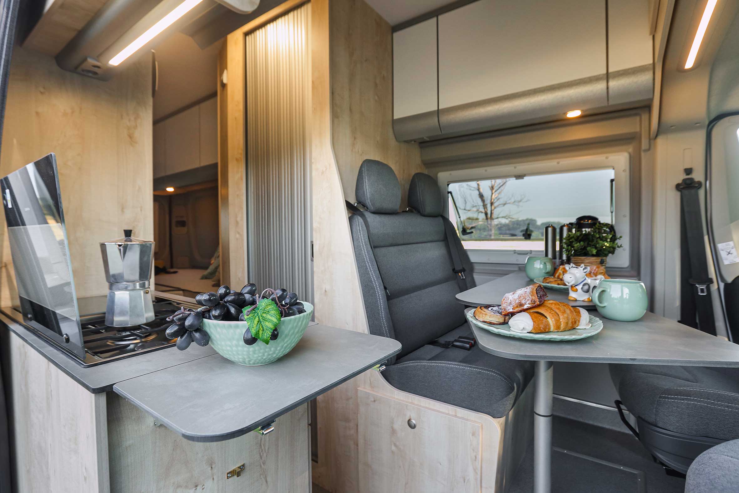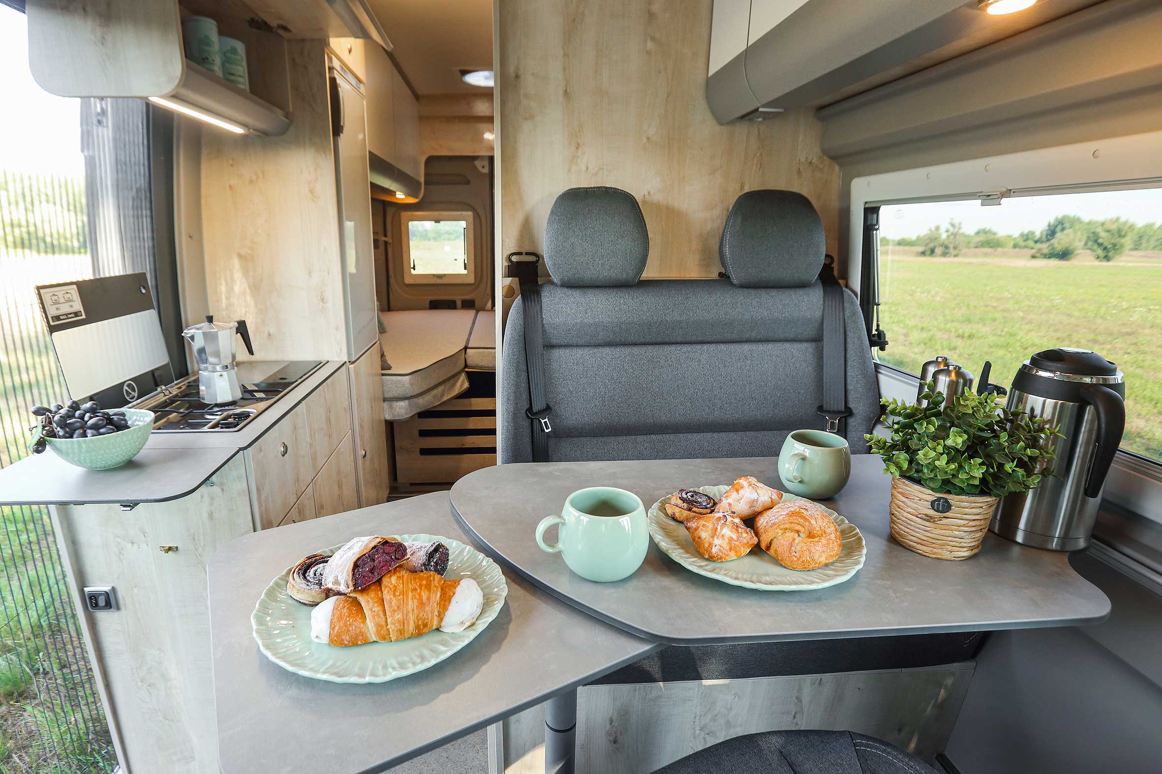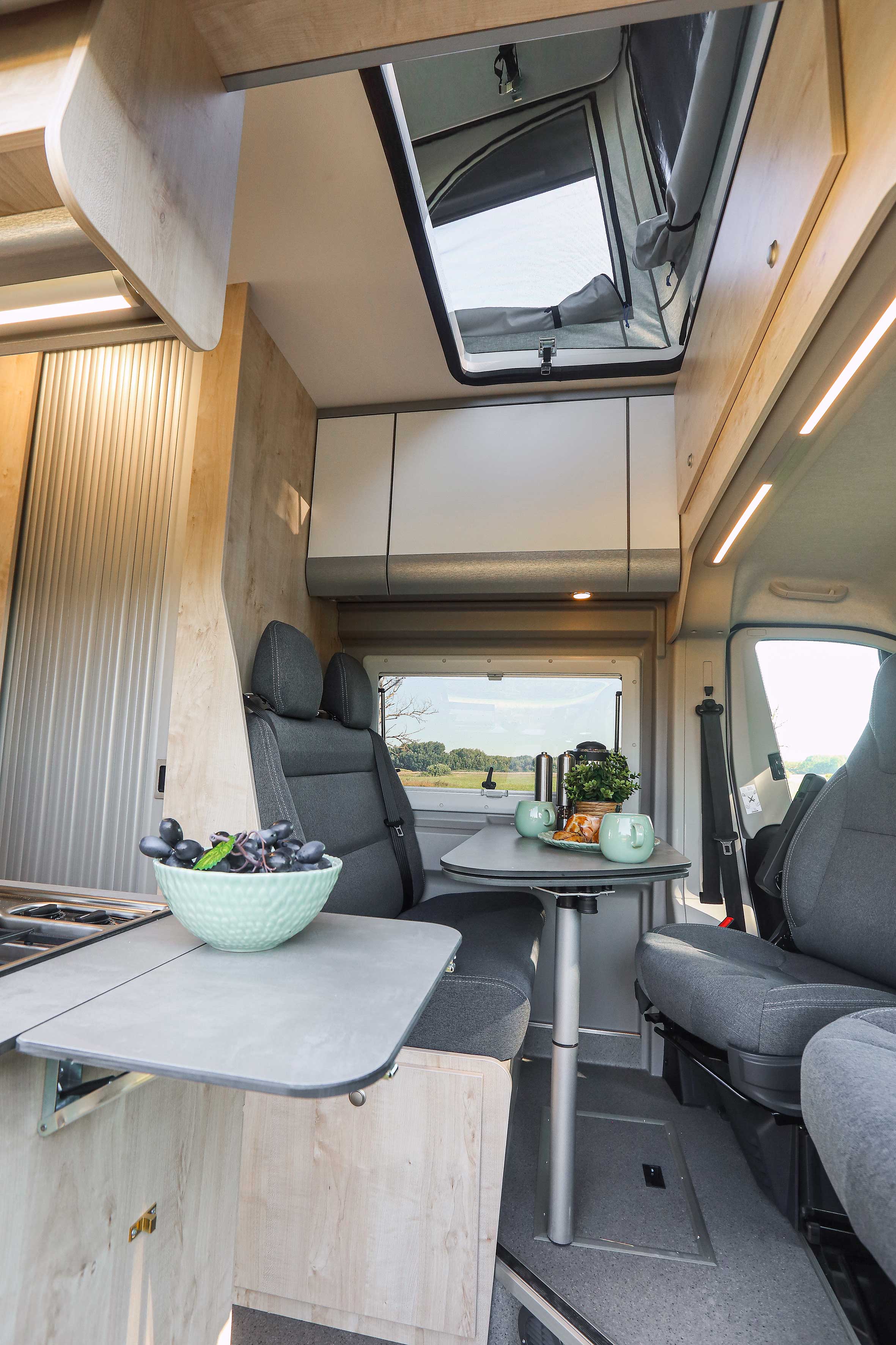 Der Grundriss gleicht dem des Runner entspricht, jedoch durch das Superhochdach noch ein wenig luftiger im Innenraum ist. Und als ob das nicht schon genug wäre, kannst Du Dich für das optionale Aufstelldach entschieden. Dadurch ist unser Clever Vans Flex der FamilienVan schlechthin.