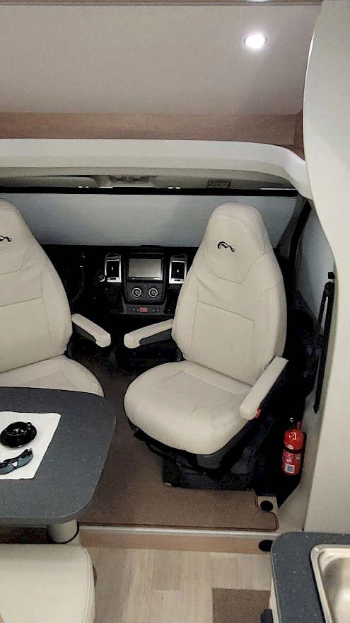 Die kompakten Abmasse von nur 6 Meter und dem Aufbau eines Teilintegrierten Reisemobiles sorgen für eine enorm kompakte Lösung.