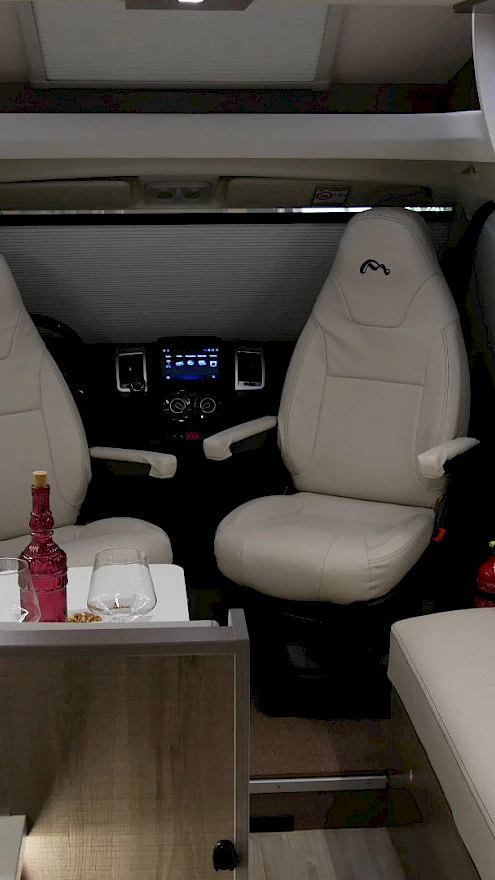 Teilintegriertes Reisemobil der Marke MOOVEO inkl. französischem Bett hinten.